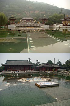 Sさん「夜、ここで玄宗と楊貴妃のショーをやるんですよ」。夜は舞台もあまり見えないし、ショーが行われているぶんにはいいかもですが、昼間に見るとなぁ…。最初からこういう状態で見ればいいのでしょうが、なまじ普通の池だった頃を知っていると。うーん…。